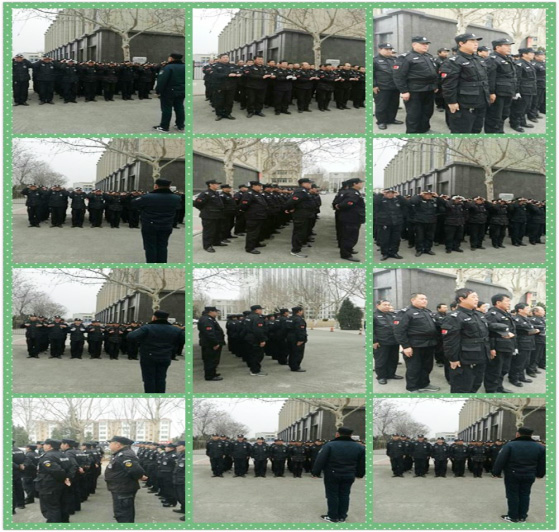 此次培訓,總經(jīng)理王新衛(wèi)精心組織、周密安排。一制定大練兵活動方案,成立以辦公室、督察科為主的督導小組。二領導帶頭,率先垂范。三統(tǒng)籌兼顧,工作訓練兩不誤。本著“干什么,學什么,缺什么,補什么”的原則進行。培訓內(nèi)容分保安理論知識與軍事訓練兩個方面。其中理論知識包括保安基礎知識、保安職責、權利和義務、保安相關的法律法規(guī)、時事政治、保安工作規(guī)范及工作技能、消防知識等內(nèi)容,軍事技能包括站軍姿、稍息、立正、齊步走等訓練課目。