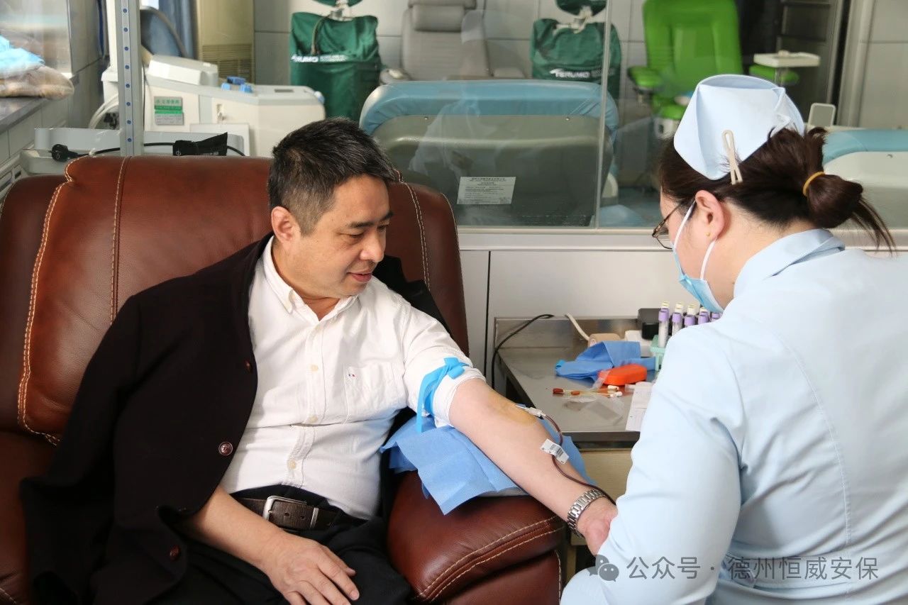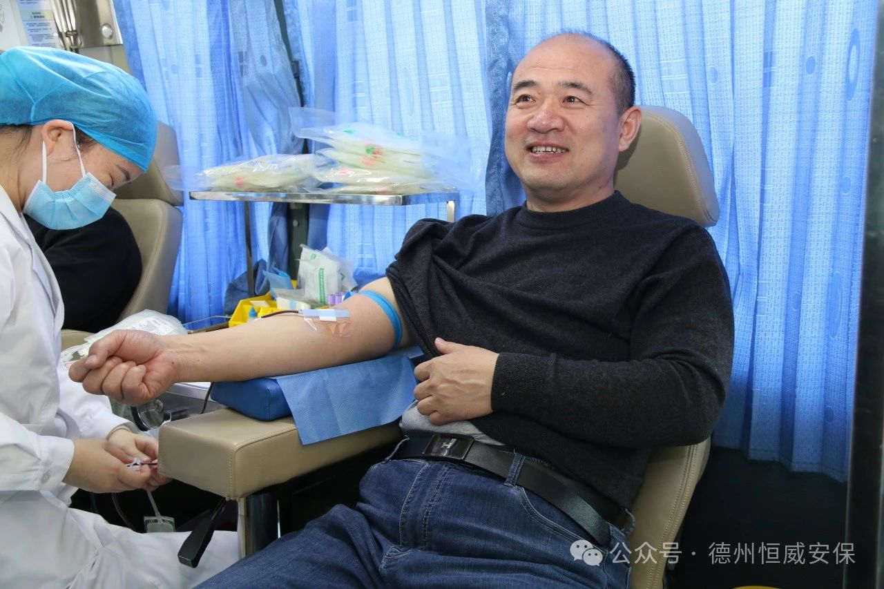 活動現(xiàn)場,公司員工在醫(yī)護人員指引下有序完成信息登記、血壓檢測、血液篩查等流程。公司副總經(jīng)理王洪林率先垂范,成為首位獻血者,他鄭重表示:“無償獻血,是每位公民引以為榮的義務(wù),更是彰顯我們社會責(zé)任感的直接方式。身為安保從業(yè)者,我們不僅在崗位上守護著客戶的安全,更需主動站出來,積極承擔(dān)社會責(zé)任。無償獻血,就是我們回饋社會的一項實實在在、看得見摸得著的行動,它有力證明了恒威企業(yè)文化中對社會責(zé)任的高度重視和切實履行。據(jù)悉,自1998年起,王洪林已連續(xù)多年堅持獻血,此次是他第34次獻血,累計獻血量高達13600毫升,并榮獲“全國無償獻血奉獻獎金獎”。